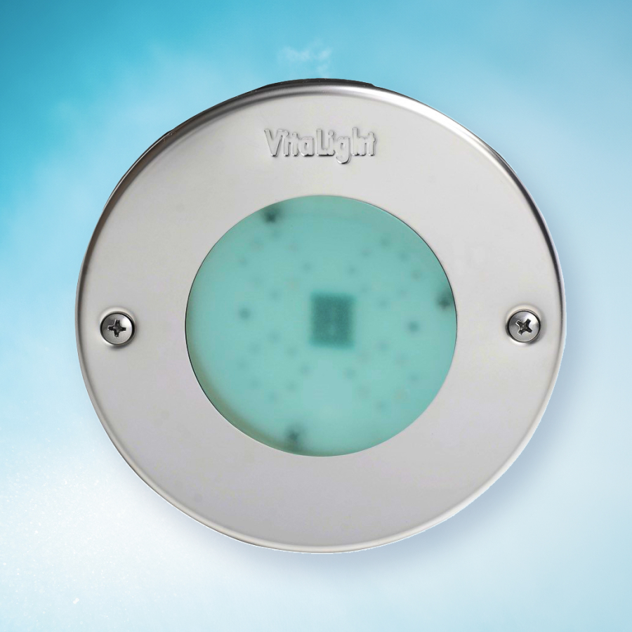 VitaLight® 8/4er POWER LED 3.0 Scheinwerfereinsatz für den Einbau in alle Beckenarten, hervorragend geeignet zur Ausleuchtung von kleineren privaten Pools. Technische Daten: Leistung: 23 W, Abstrahlwinkel 120°, Spannung 24 V Lichtstrom in Lumen: 4300 lm (6000 K); 3700 lm (3000 K) und 3000 lm (RGBW)
